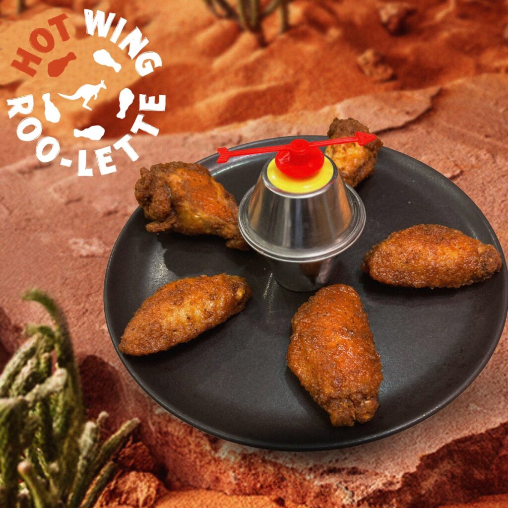 Like taking risks? Outback Steakhouse has a new secret menu item for a limited time. Ask for the #HotWingROOletteChallenge, a game of chance where you spin to determine which wing to eat. One of the five wings is the spicy Kangaroo Kick.