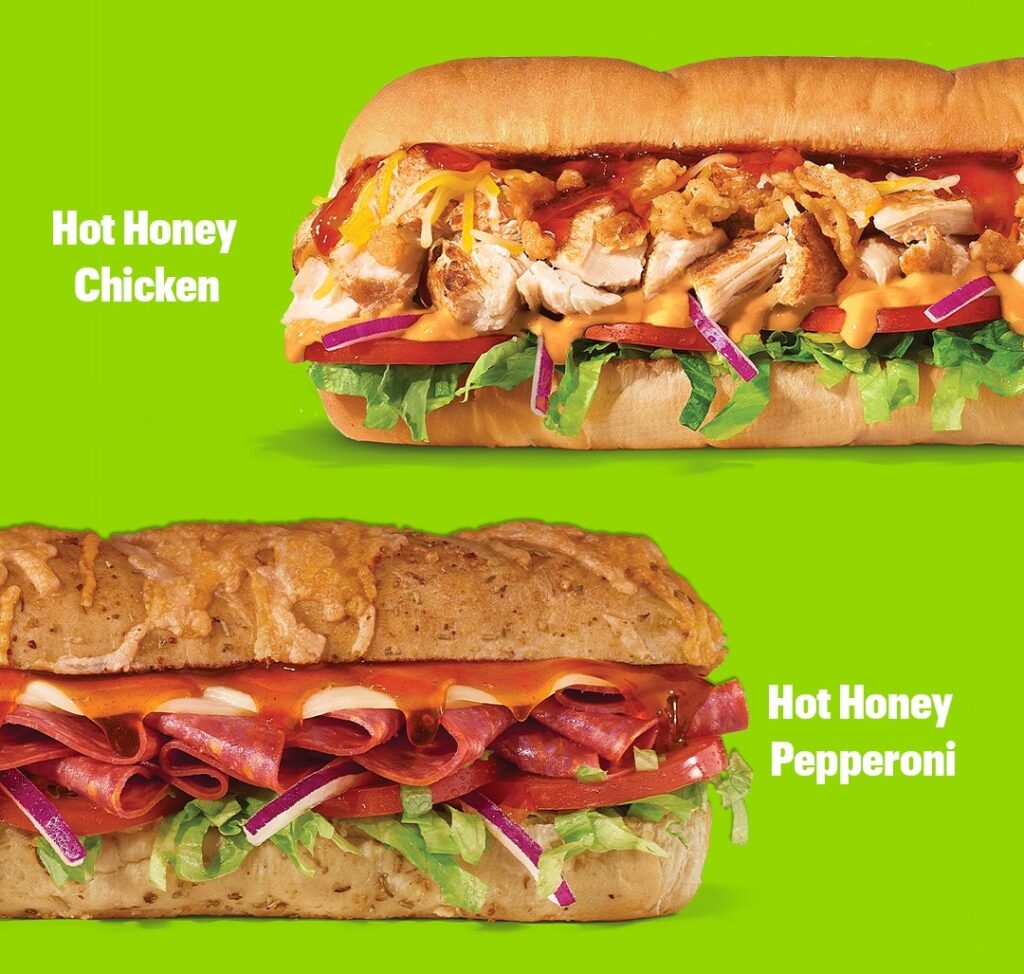 Hot honey also is the featured flavor on two new subs at Subway. Hot Honey Chicken and Hot Honey Pepperoni are available for a limited time.
