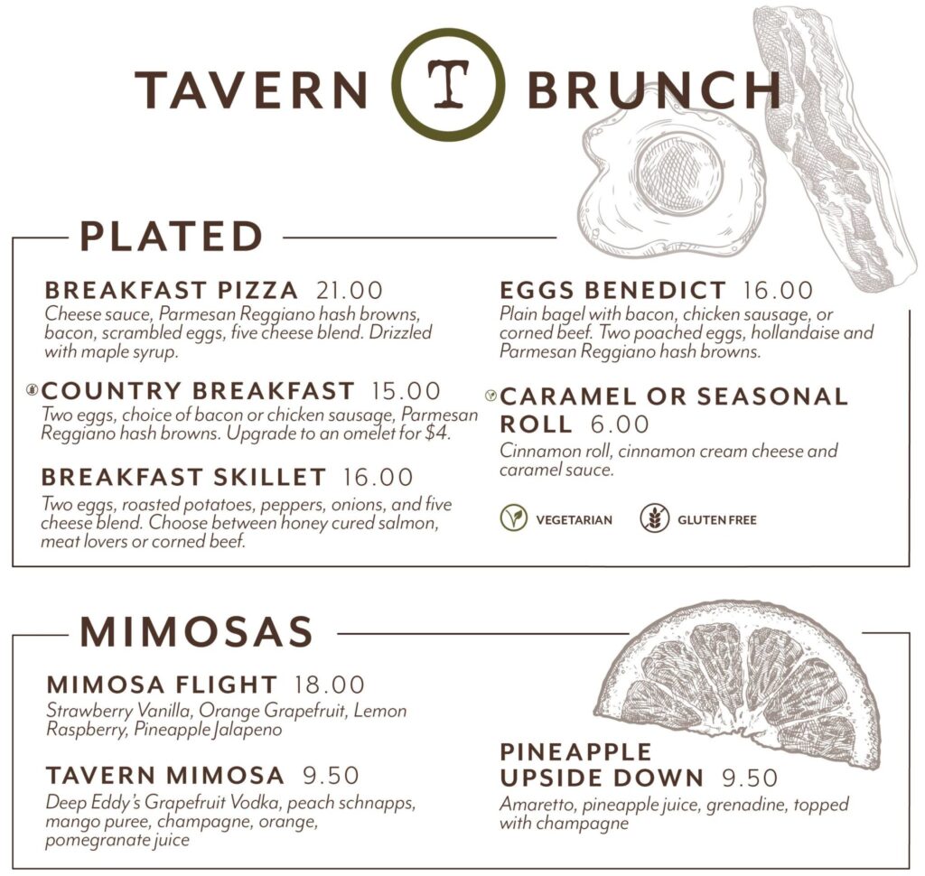 The Tavern Grill has added to its Sunday breakfast offerings. In addition to a revamped buffet, there now is a plated brunch with five options. That’s a photo of the breakfast pizza at the top of the article.