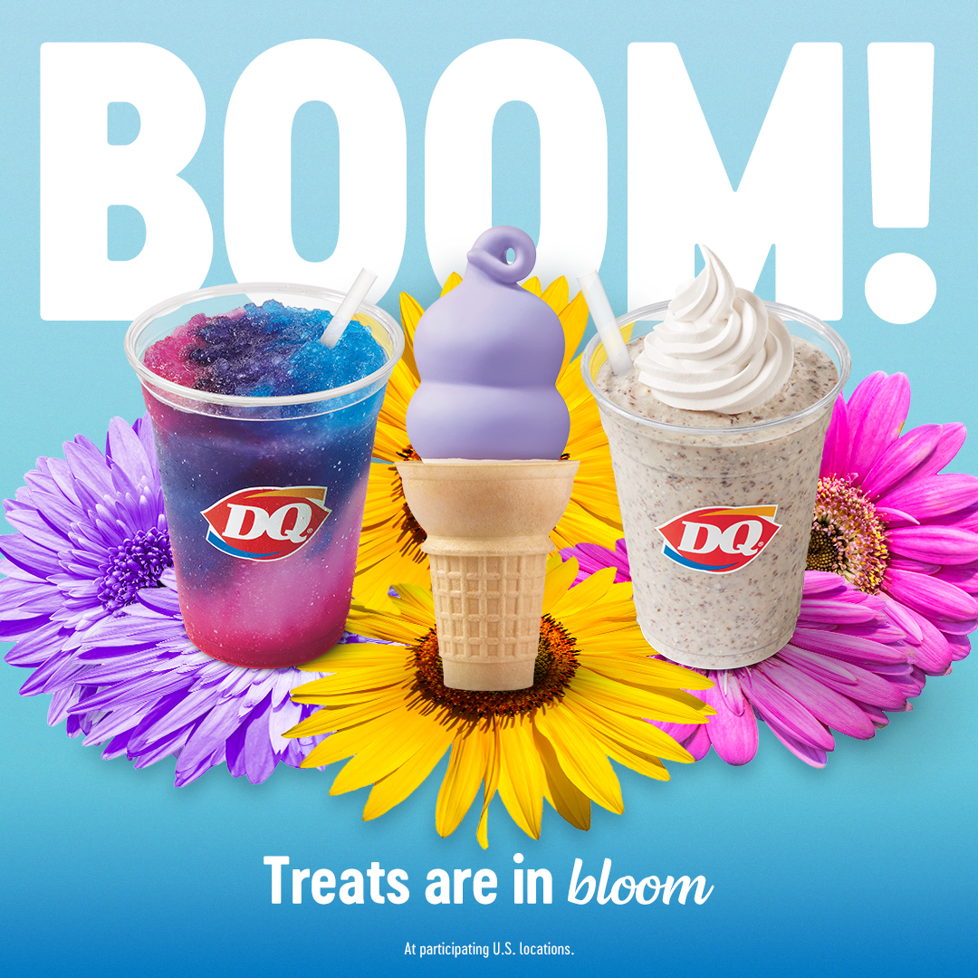 Check out the colorful new spring treats at Dairy Queen. There’s a new Poolside Punch Twisty Misty Slush, Fruity Blast Dipped Cone and S’mores Shake.
