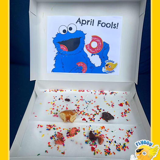 Flyboy Donuts has a new trick up its sleeve for April Fool’s Day. Get a box of crumbs and sprinkles to set out first, along with a real dozen for later, or you can have a gift card tucked in with the crumbs. Order online at flyboydonuts.com for delivery or pickup.
