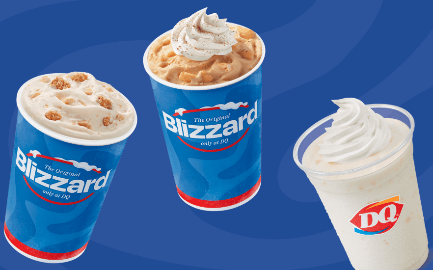 Fall seasonal treats have arrived at DQ. New this year are Caramel Toffee Cookie Blizzard and Maple Cookie Shake. The Pumpkin Pie Blizzard is back.