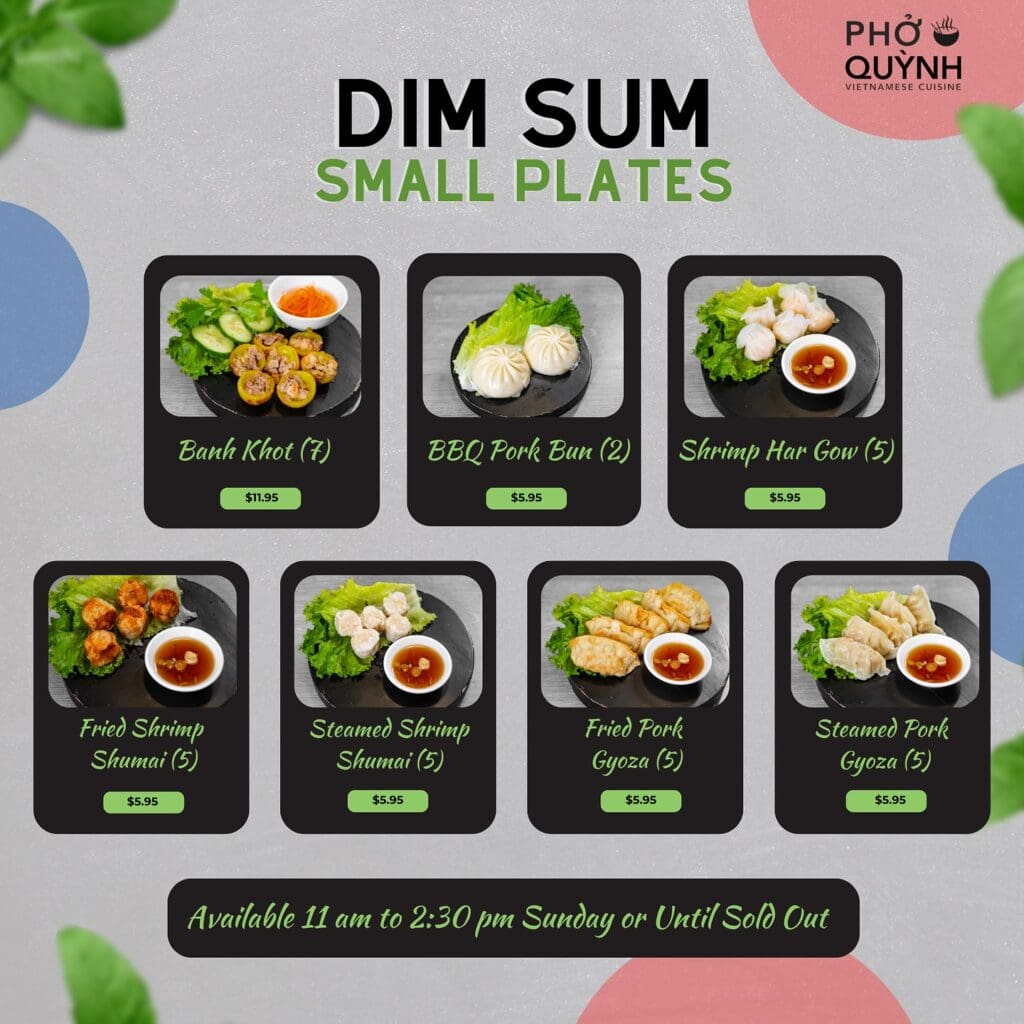 Pho Quynh Vietnamese Restaurant is now serving dim sum from 11 a.m. to 2:30 p.m. Sundays – or until sold out. Items will occasionally rotate but will include favorites like pot stickers, bao, shumai and other small plates. According to the restaurant, dim sum is a Cantonese brunch of small plates that are served hot and are meant to be passed around the table.