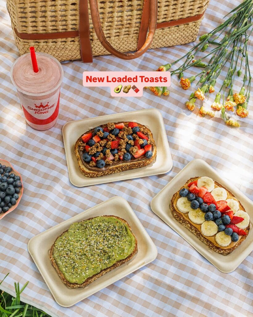 Smoothie King has new loaded toasts in three options: avocado, peanut butter and chocolate hazelnut, all of which can be customized with additional toppings for an extra charge.