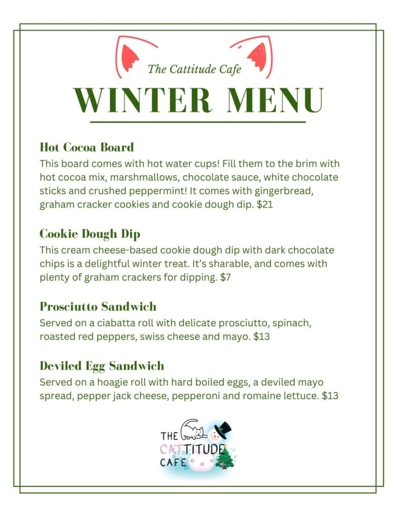 Here’s a look at the new winter menu for The Cattitude Cafe. It will be available through December.