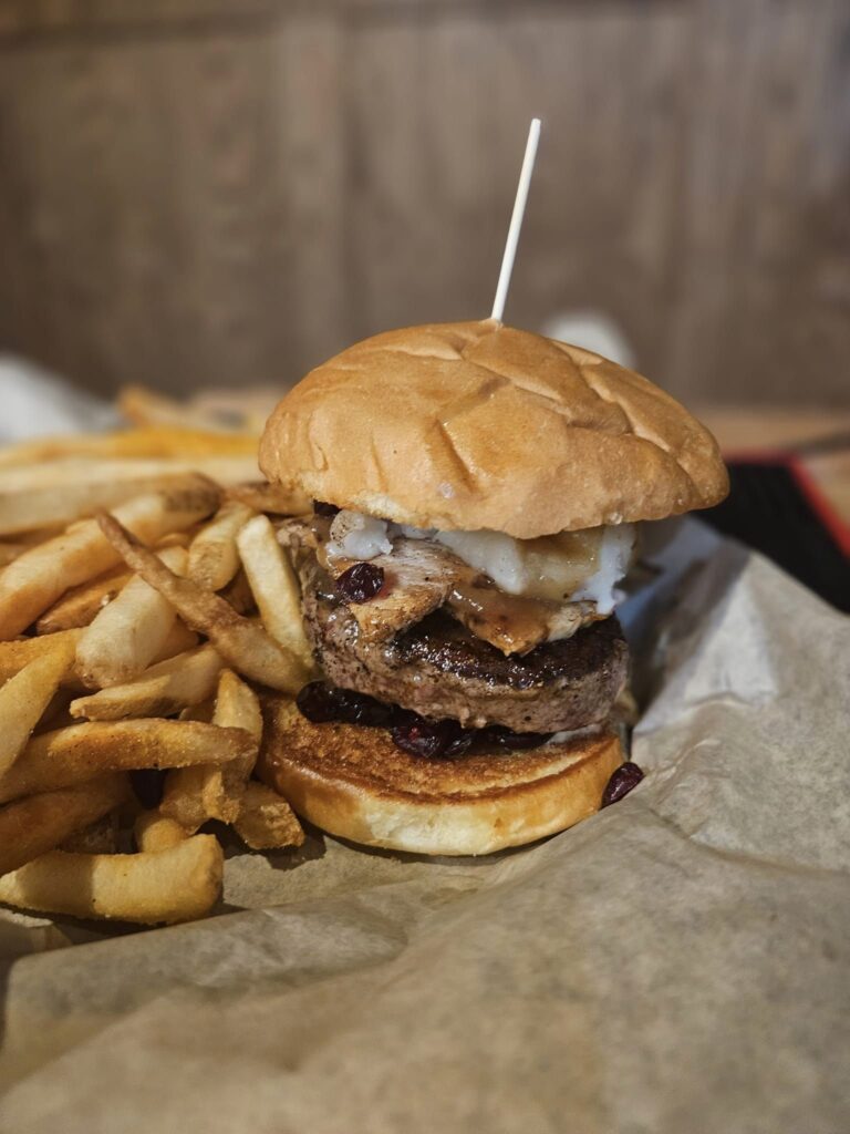 The turkey dinner on a burger is back at Crooked Pint Ale House. The Cornucopia is an American cheese-filled patty topped with thick sliced turkey, a heap of mashed potatoes, bourbon-soaked cranberries and gravy. It’s served with pub fries.