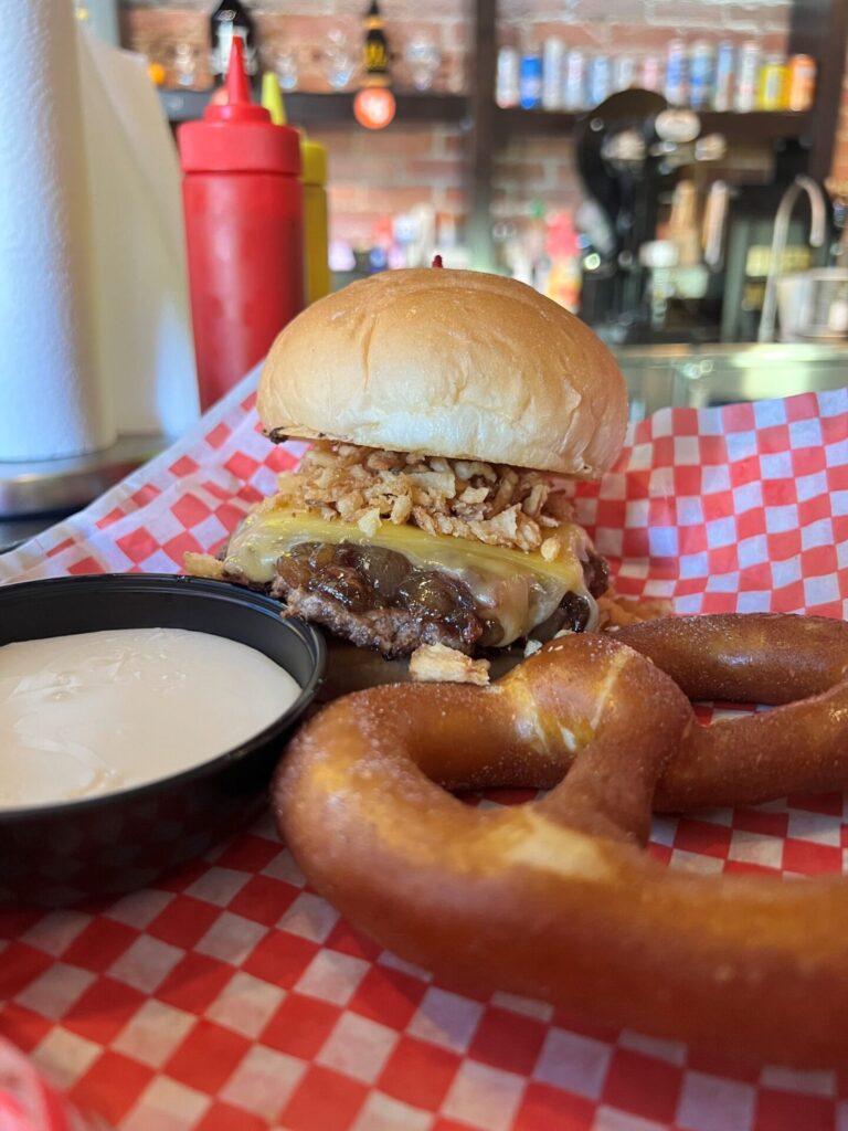 JL Beers has new sweet and savory menu items. There’s a cinnamon sugar pretzel with vanilla icing and the Wham! Bam! Bacon Jam! Burger that also has melted gouda, crispy onion and pickles.