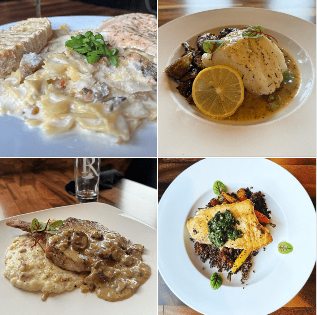 To celebrate its fifth anniversary, R Wine Bar & Kitchen has added four menu items: Pasta Amore is sautéed garlic, shallots and local mushrooms that are combined with fresh diced tomatoes and toasted pine nuts in a pecorino cream sauce. The Chilean Sea Bass is poached and served with caramelized Brussels sprouts in a lemon pepper sauce, and the Portobello Pork Chop is a Frenched bone-in chop topped with a portobello sauce and served with Boursin mashed potatoes. The Swordfish Steak is pan-seared and served with tomato confit red quinoa, chimichurri, lemon and micro baby carrots.