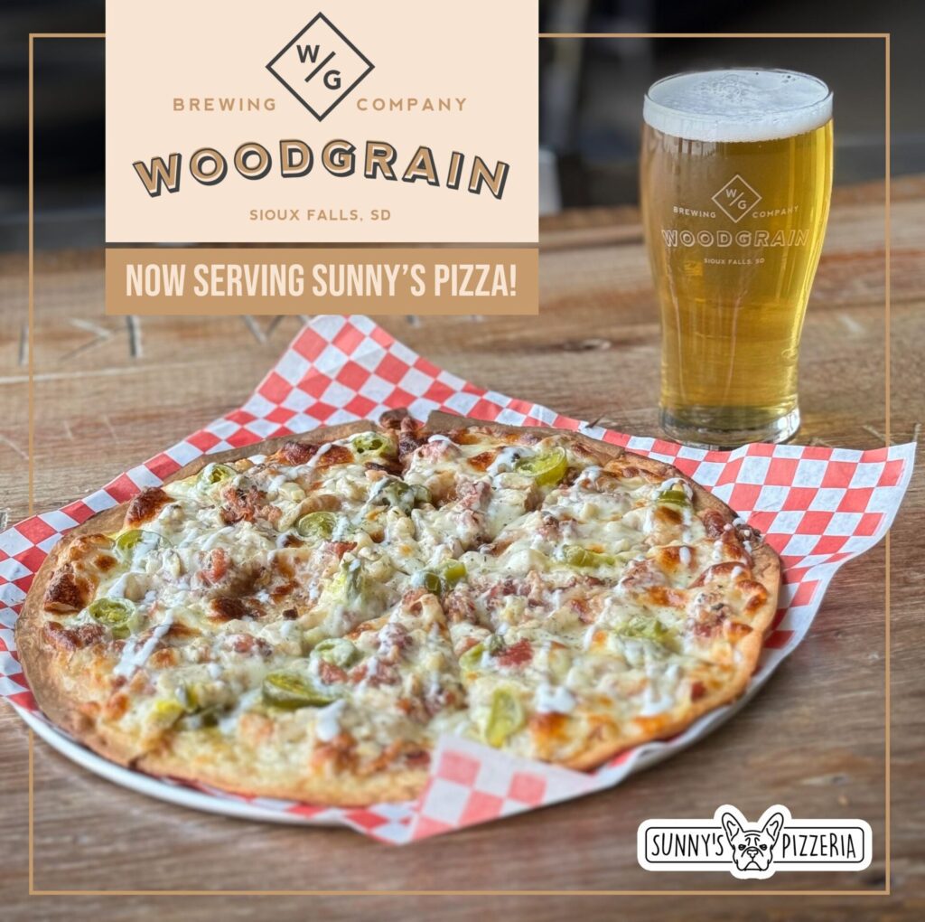 WoodGrain Brewing Co. now serves food. The downtown brewery has added a selection of Sunny’s Pizza. Two of the five offerings are custom flavors for WoodGrain. Sunny’s has four other wholesale partners: Glacial Lakes Distillery, Lupulin Brewing Co. and The Orion Pub, all in Sioux Falls, and The Bunker Bar in Harrisburg.
