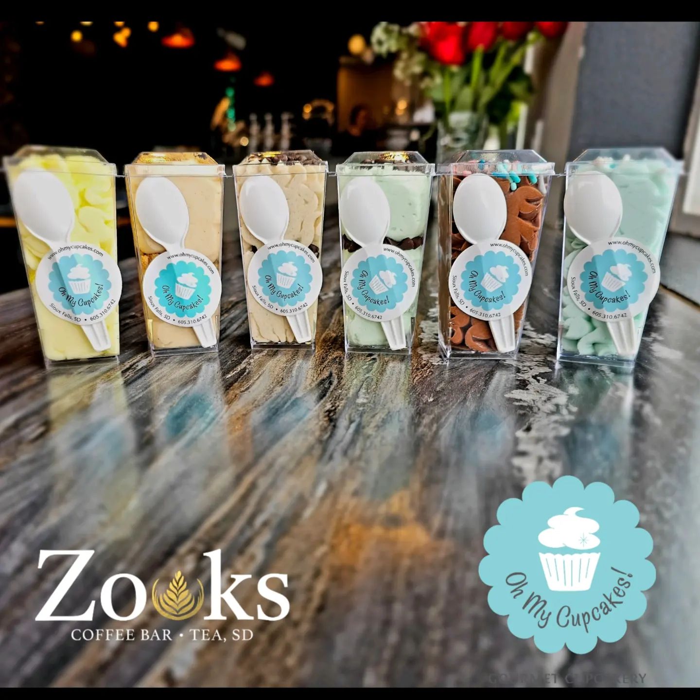 The cupcake bakery’s Frosting Shots are available now at Zooks Coffee Bar in Tea, which works to source local treats for its coffee, tea and Buzzed drinkers.