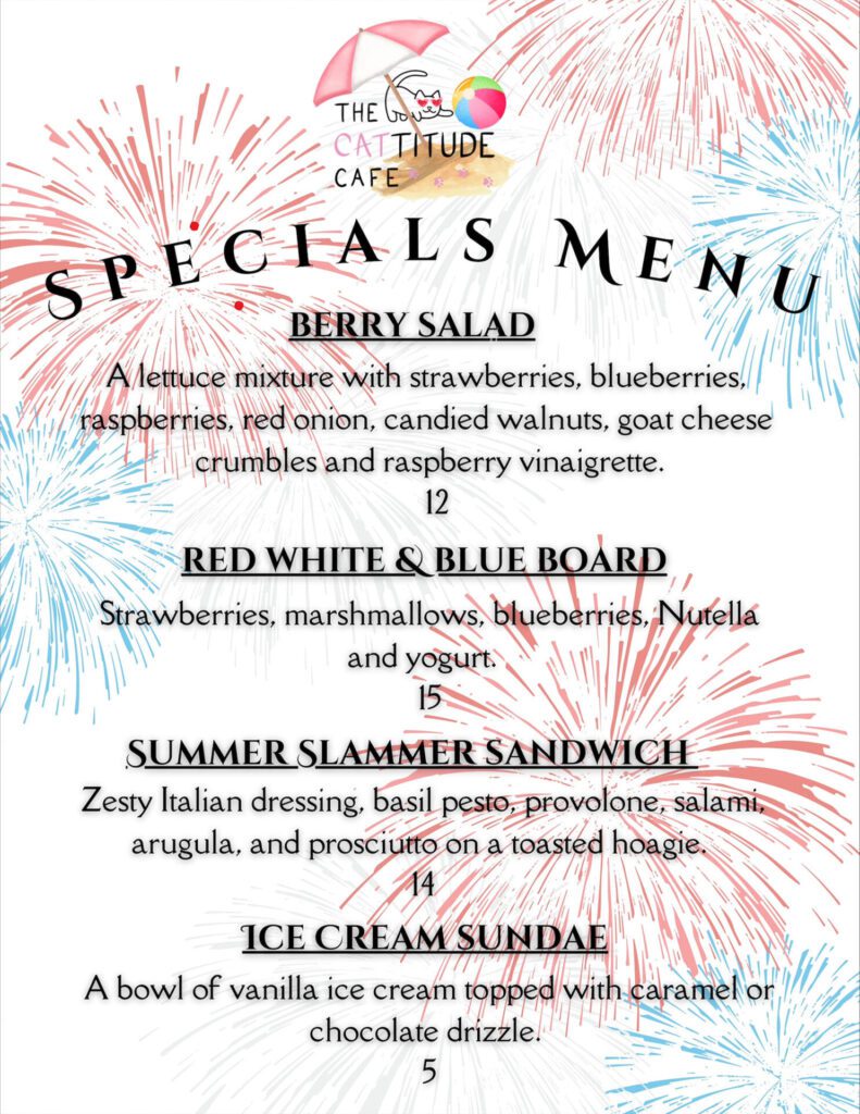 The Cattitude Cafe is celebrating its one-year anniversary Monday with on-the-spot adoptions from 11 a.m. to 4 p.m. and almost three dozen kittens and cats who need a home. There’s a new specials menu to enjoy for summer.