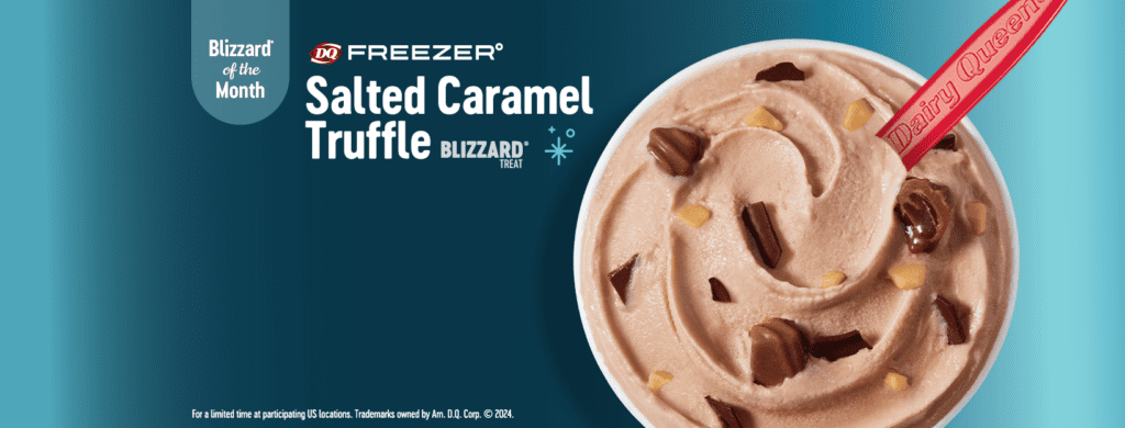Dairy Queen’s latest limited-time Blizzard flavor release from the “DQ Freezer” is Salted Caramel Truffle.