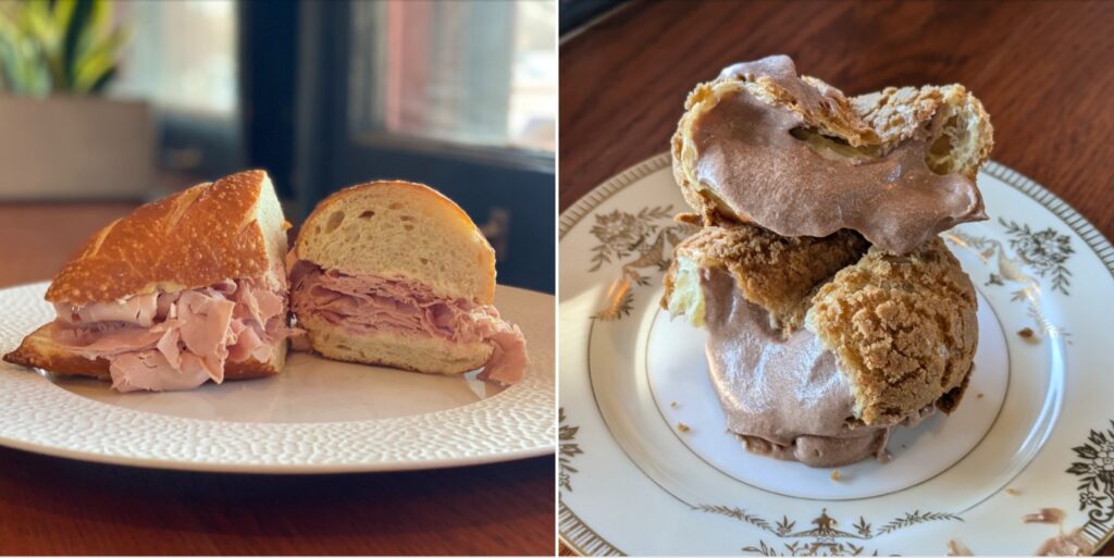 The new Nunzio’s Food Hall has added another offering to its lineup: Pierre’s Jambon Beurre. The sandwich features French bistro ham and your choice of imported Maison Bordier butter on a housemade levain demi baguette. It also serves Choux au Craqueline, which are creme puffs filled with pastry cream and whipped cream. The “food hall” is actually a takeout concept at Harvester Kitchen by Bryan. It opened last month with the return of Nunzio’s Pizza Kitchen and the new Corky’s Wine Shop. Hours for Nunzio’s Food Hall are 4 to 8:30 p.m. Wednesday through Sunday. Orders can be placed online at nunziosfoodhall.com anytime for pickup during those hours. Read more about the concept in this story we did last month.