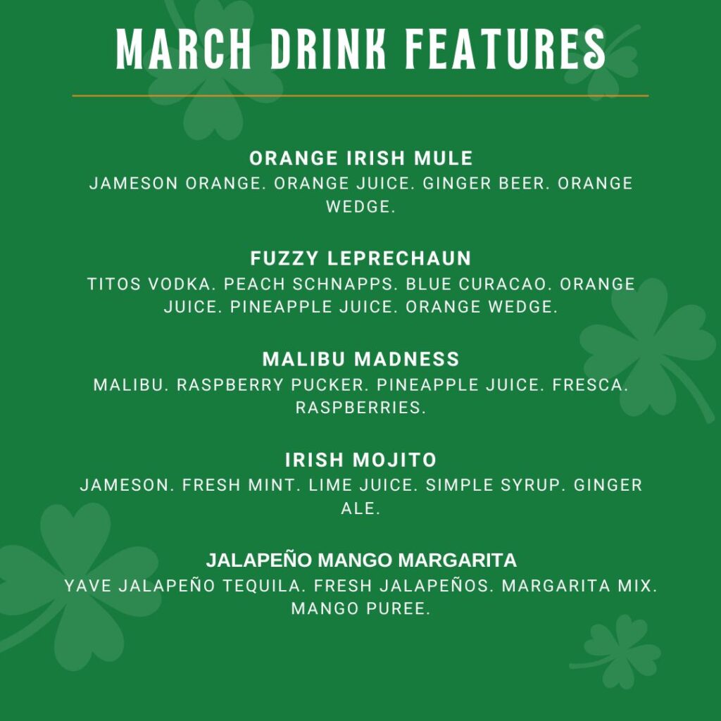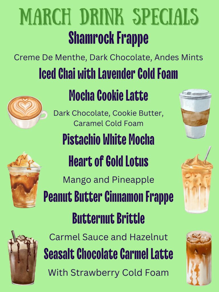 Here’s the featured drink menu for March at Josiah’s Coffeehouse, Cafe & Bakery.