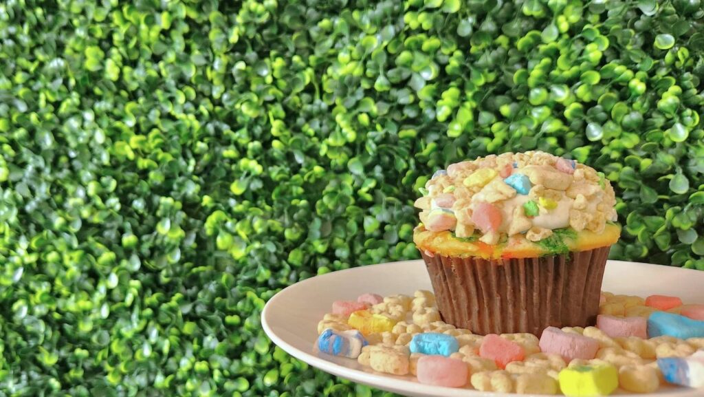 Oh My Cupcakes used St. Patrick’s Day for inspiration to create its March flavors. The Pot-O-Gold is a signature vanilla bean cake filled with salted caramel, topped with green vanilla bean buttercream, gold coins – think sprinkles – and a rainbow candy. Magically Delicious is vanilla bean cake with colored sprinkles mixed in, then topped with marshmallow buttercream and rolled in marshmallow cereal.