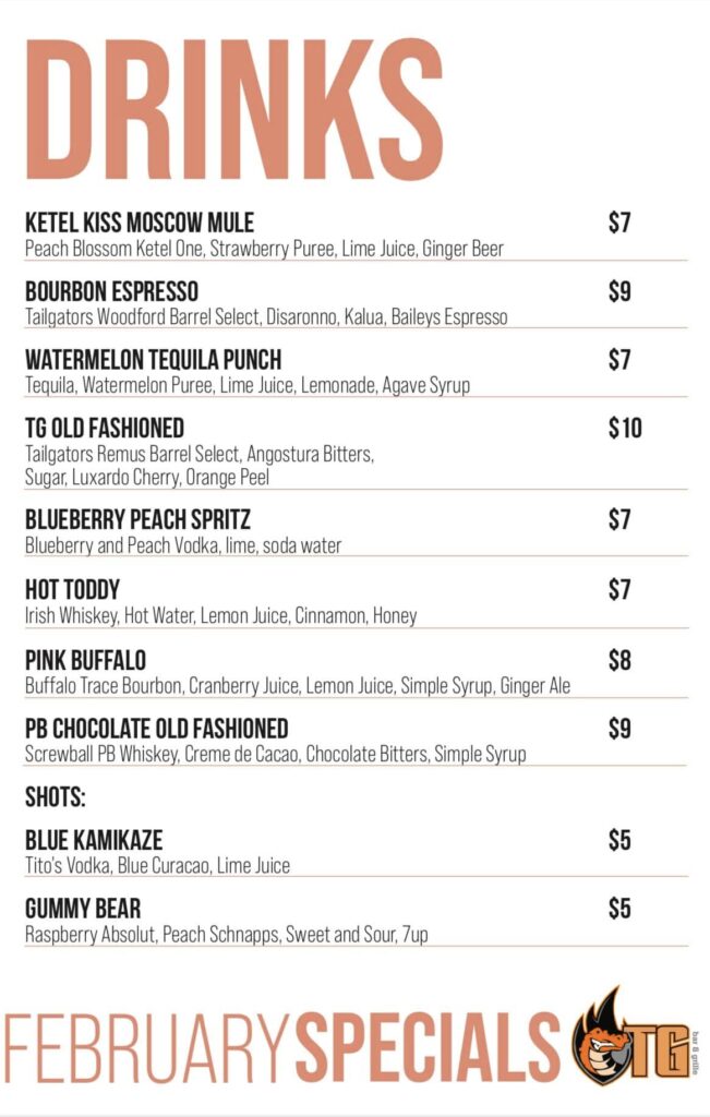 New featured food and drink menus are here for Tailgators Grill & Bar in Brandon.