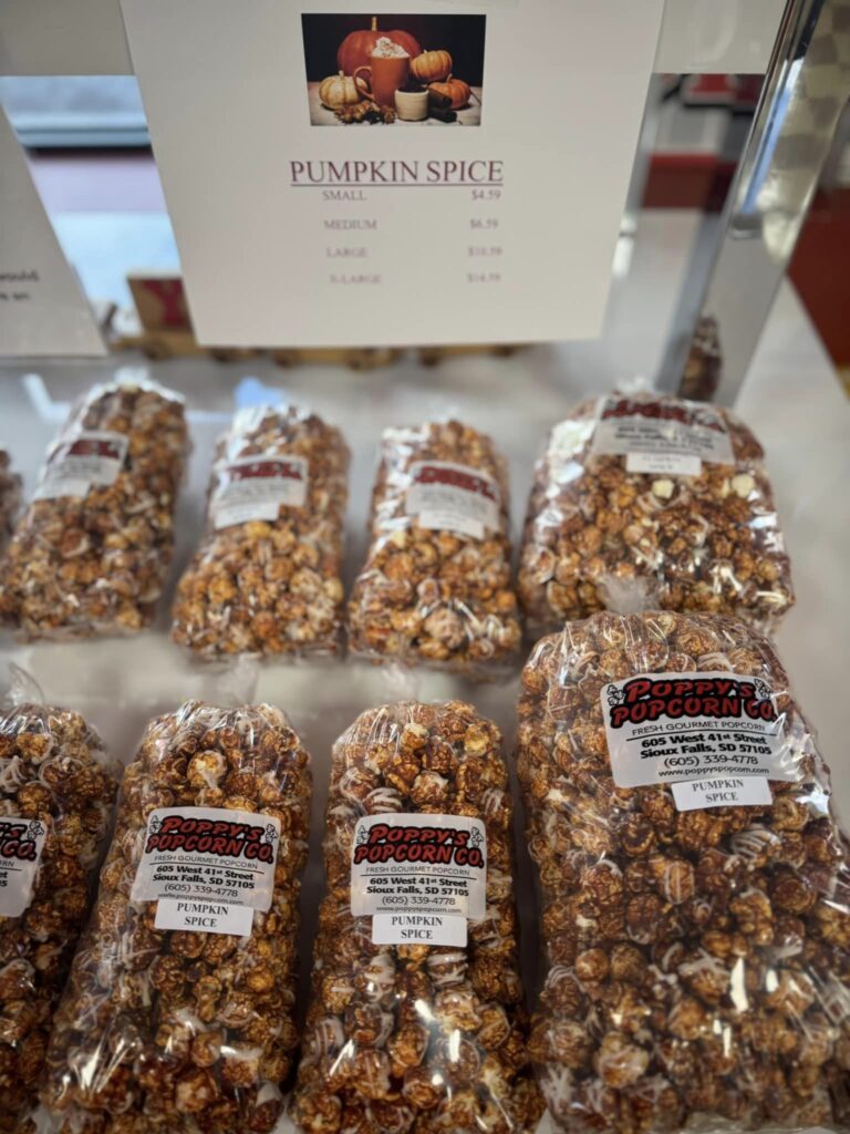 Poppy’s Popcorn Co. has a new flavor for fall: Pumpkin Spice. It’s a sugar-coated popcorn with a subtle pumpkin spice flavoring and is drizzled with white chocolate and dusted with cinnamon. It’s available bagged in several sizes, and larger amounts can be ordered.