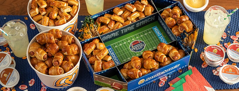 This football snack pack wins the fun packaging award. Auntie Anne’s in The Empire Mall offers a Game Day Snack Pack with two pretzel buckets, six dips and the “snack stadium.” Bucket options include mix-and-match choices of original, cinnamon sugar or mini pretzel dogs. The price is $46, and it serves five to seven people.