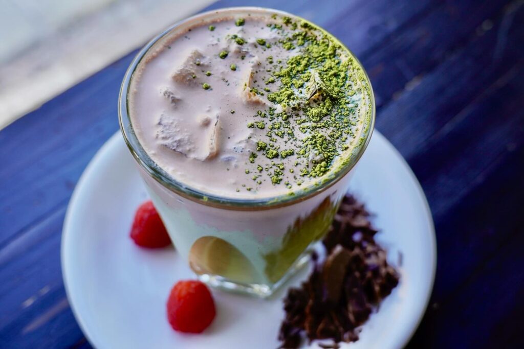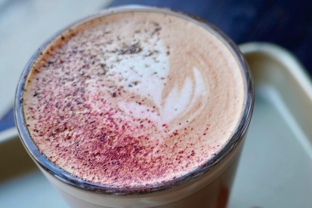 Featured drinks this month at The Breaks Coffee Roasting Co. are Jadorade, a raspberry and rose iced ceremonial-grade Matcha Sonogi latte with chocolate cold foam, and Beet It with espresso, milk, black pepper-infused vanilla syrup, beet powder and cherry simple syrup.