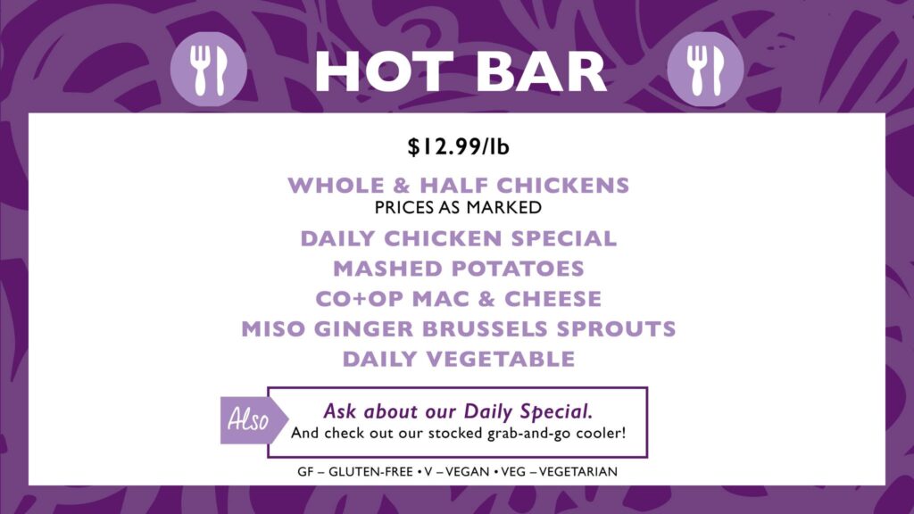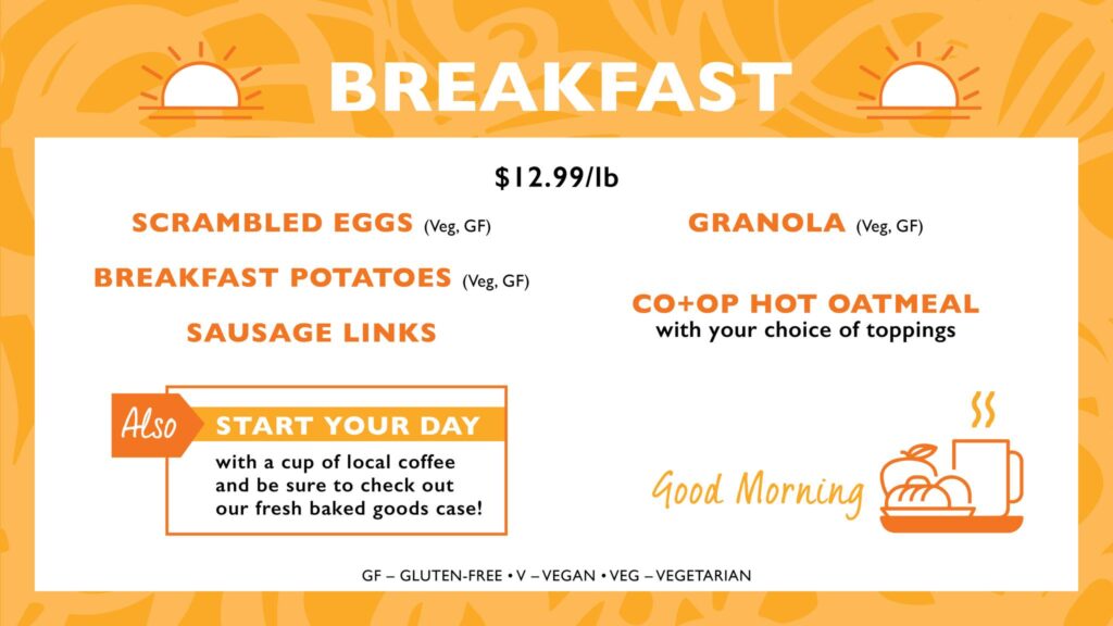 The Sioux Falls Food Co+op is done remodeling the deli hot bar. Diners will find self-serve hot bars for breakfast and lunch/dinner. Salads, bowls and smoothies are still available to order.