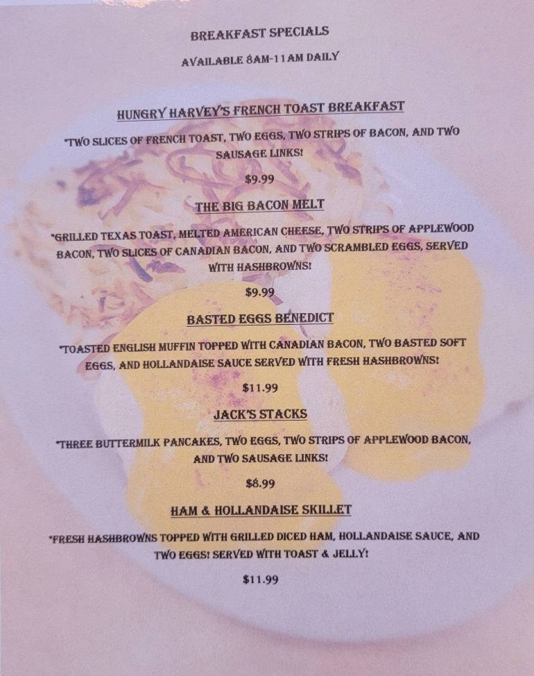 Here are the new breakfast specials at Crack’d Pot Restaurant. They’re available all day, but the discounts run from 8 to 11 a.m. daily.
