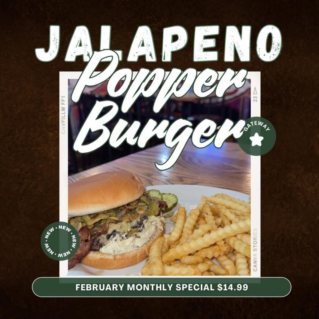 - Gateway Bar & Lounge: The Jalapeno Popper Burger is a quarter-pound patty blended with jalapeno-infused cream cheese, topped with pepper jack cheese, bacon and jalapeno chips.