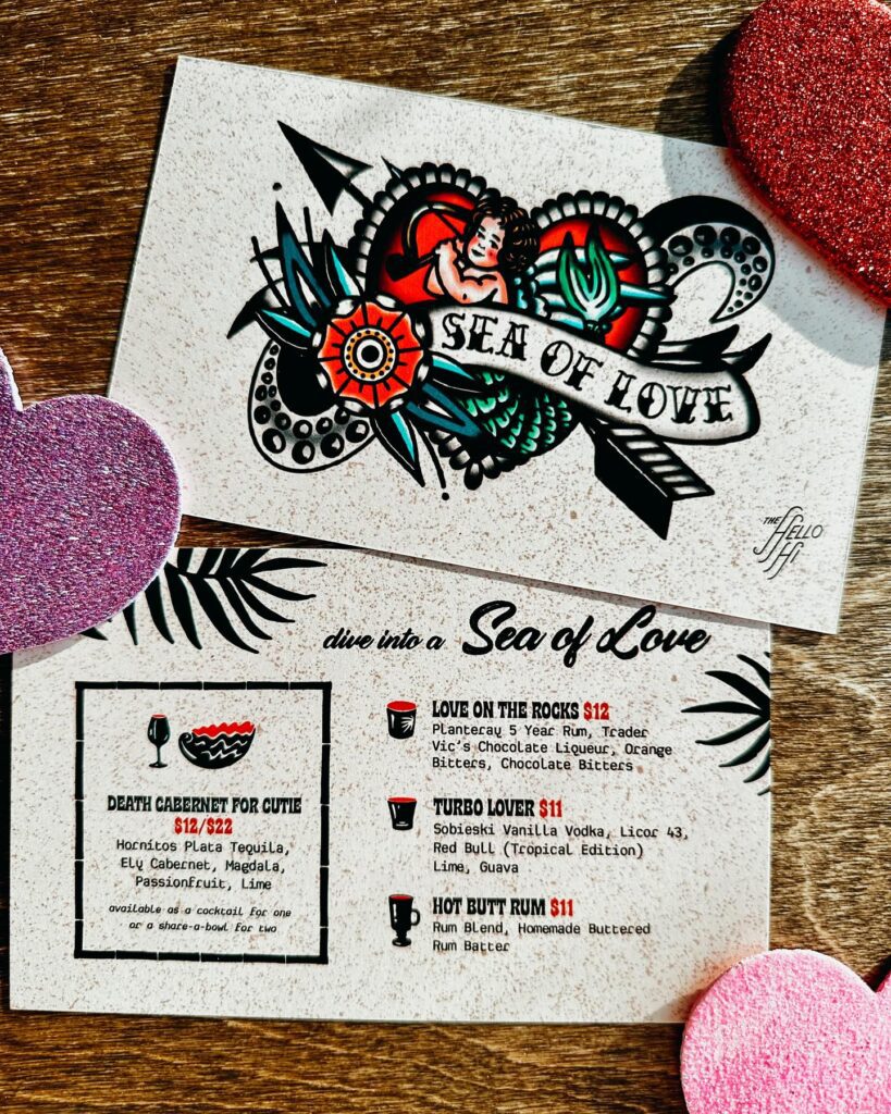 - The Hello Hi: Love on the Rocks, Turbo Lover, Hot Butt Rum and Death Cabernet for Cutie for one or a share-a-bowl for two. They’re available all month.