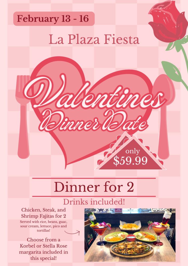 Feeling like Mexican? La Plaza Fiesta’s dinner special is available today through Sunday. The $60 fajita dinner for two includes drinks.