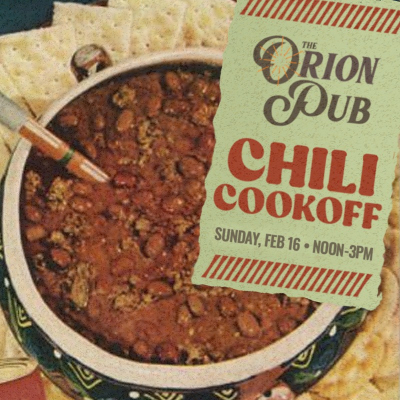 The Orion Pub is having its second annual chili cook-off from noon to 3 p.m. Sunday. Bring your favorite recipe or serve as a judge. The winner gets a $50 gift club to the downtown bar and a T-shirt.