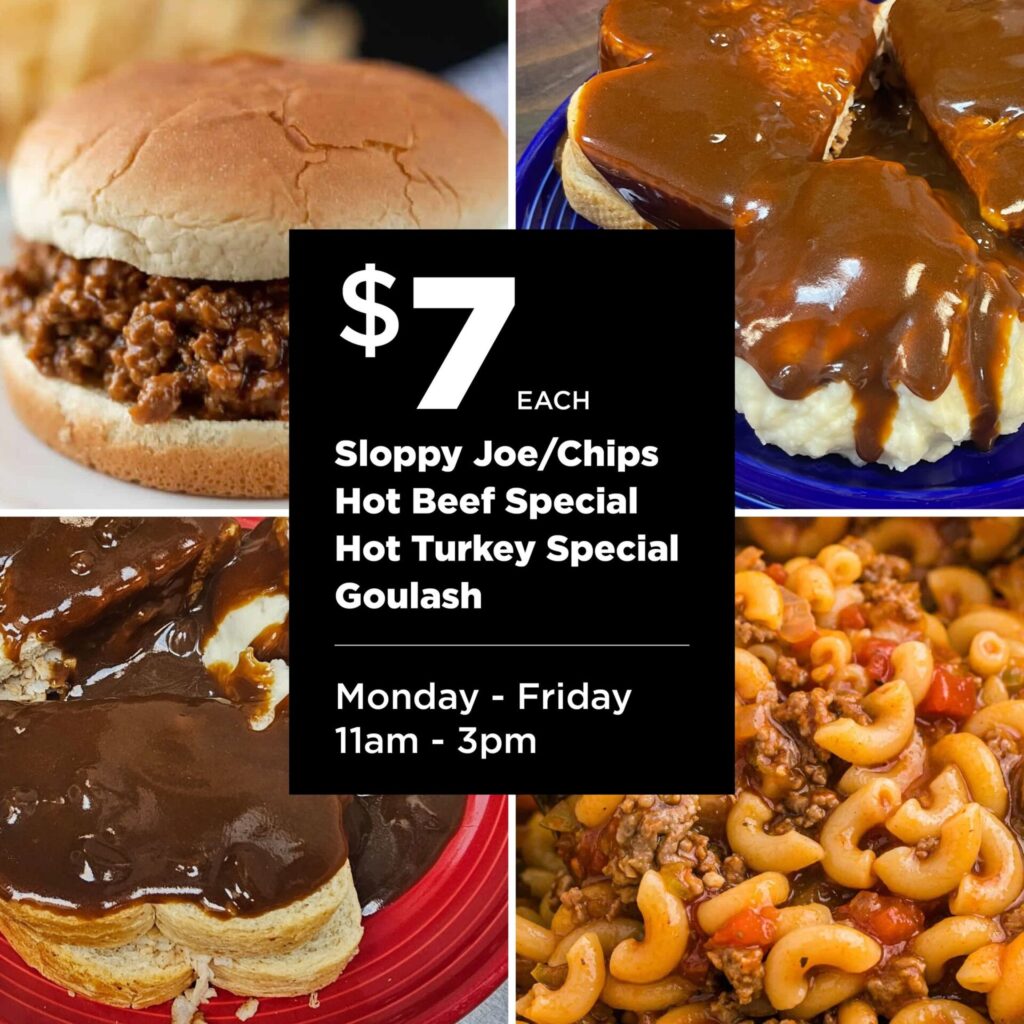 The SandBar & Grill has new Railbirds Fast-Track Lunch specials available from 11 a.m. to 3 p.m. weekdays this month. For $7, get a hot beef or hot turkey sandwich with mashed potatoes and gravy, goulash or a sloppy joe with housemade Parmesan kettle chips.