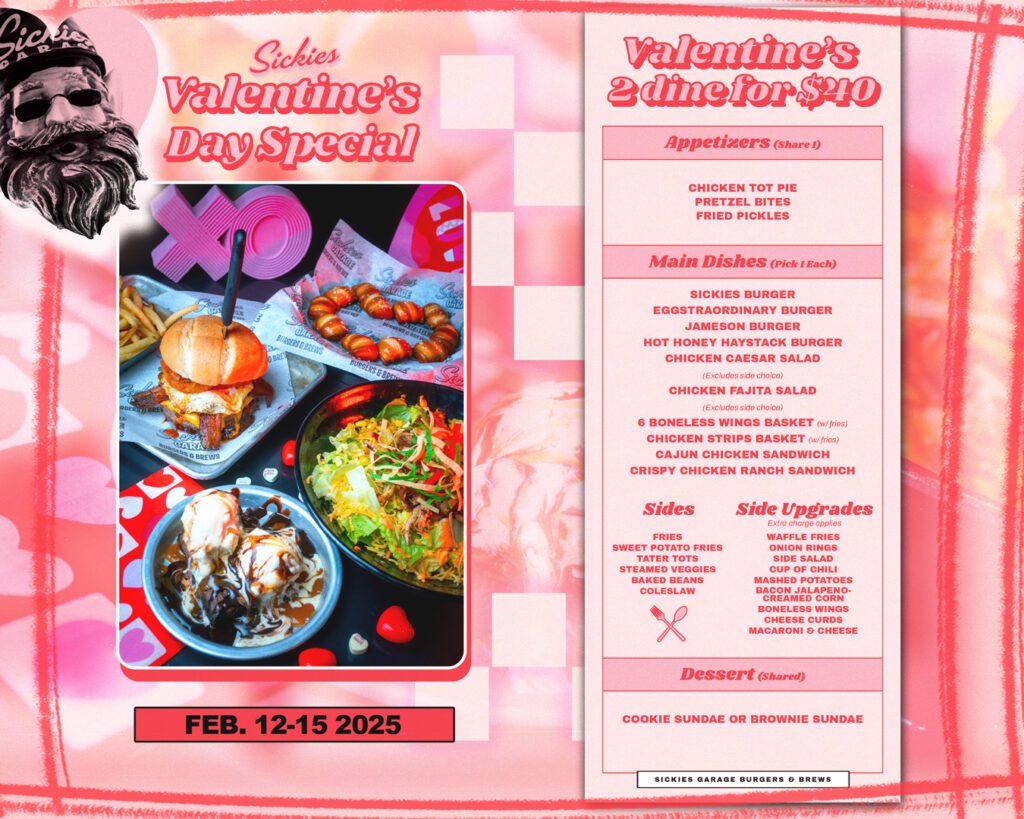 Here’s a three-course menu with lots of options from Sickies Garage Burgers & Brews that’s available today through Saturday.