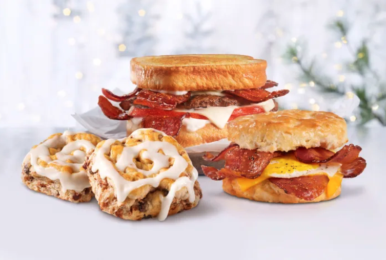 There’s still time to catch two featured items at Hardee’s. Cinnamon ‘N’ Raisin Biscuits are back, along with candied bacon that can be added on several menu items.