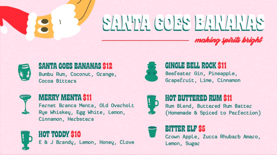 Check out the Santa Goes Bananas holiday cocktail menu at The Hello Hi. Stop by during happy hour from 4 to 7 p.m. weekdays and save $2.