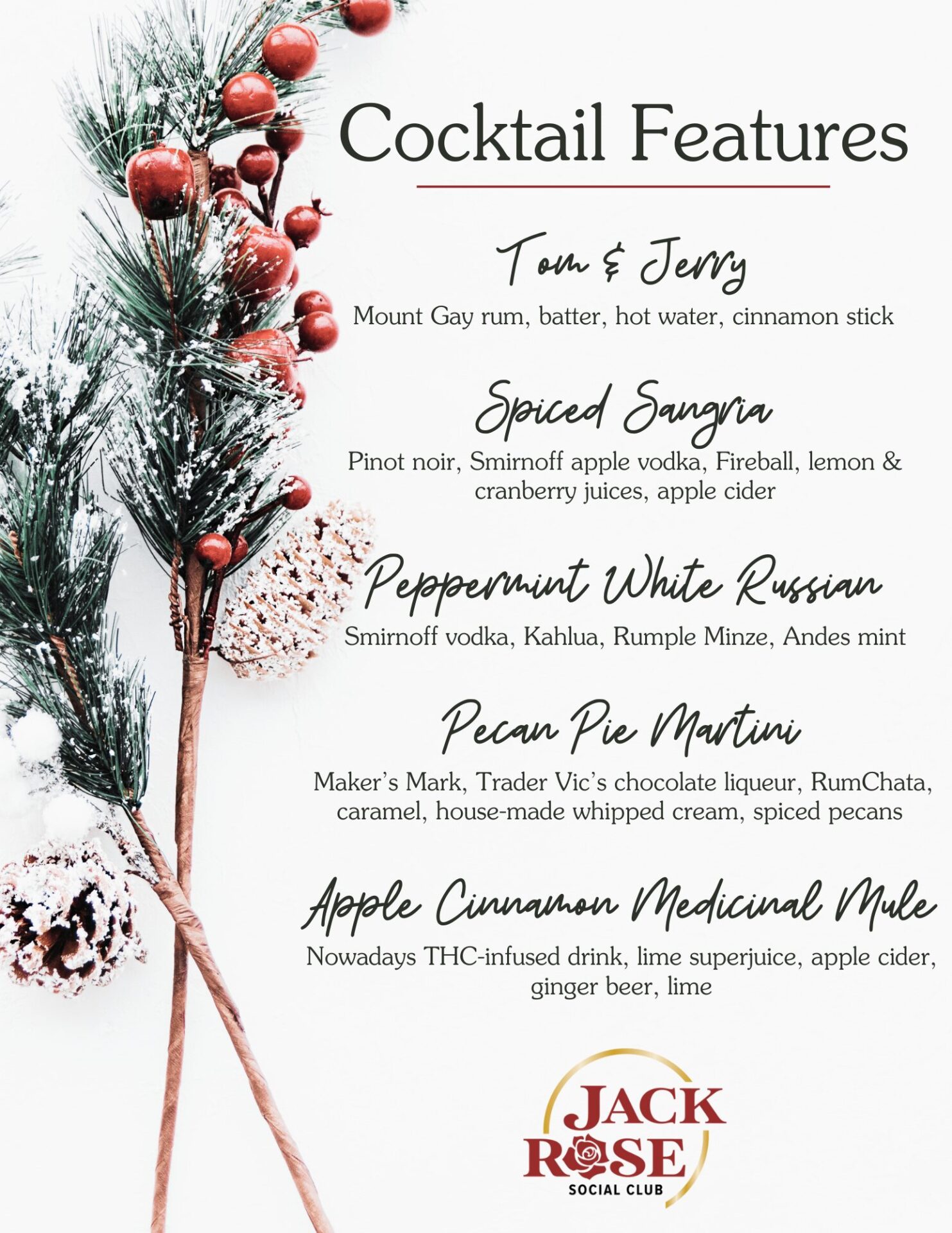 Jack Rose Social Club has updated its menu with new items. Among the offerings are the Langostino Roll, Venison Cheesesteak and Mushroom Swiss Burger. A new fried mushroom appetizer is served with housemade Green Goddess dressing, and a lunch favorite, the Nashville Hot Chicken Sandwich, is available now for dinner too.