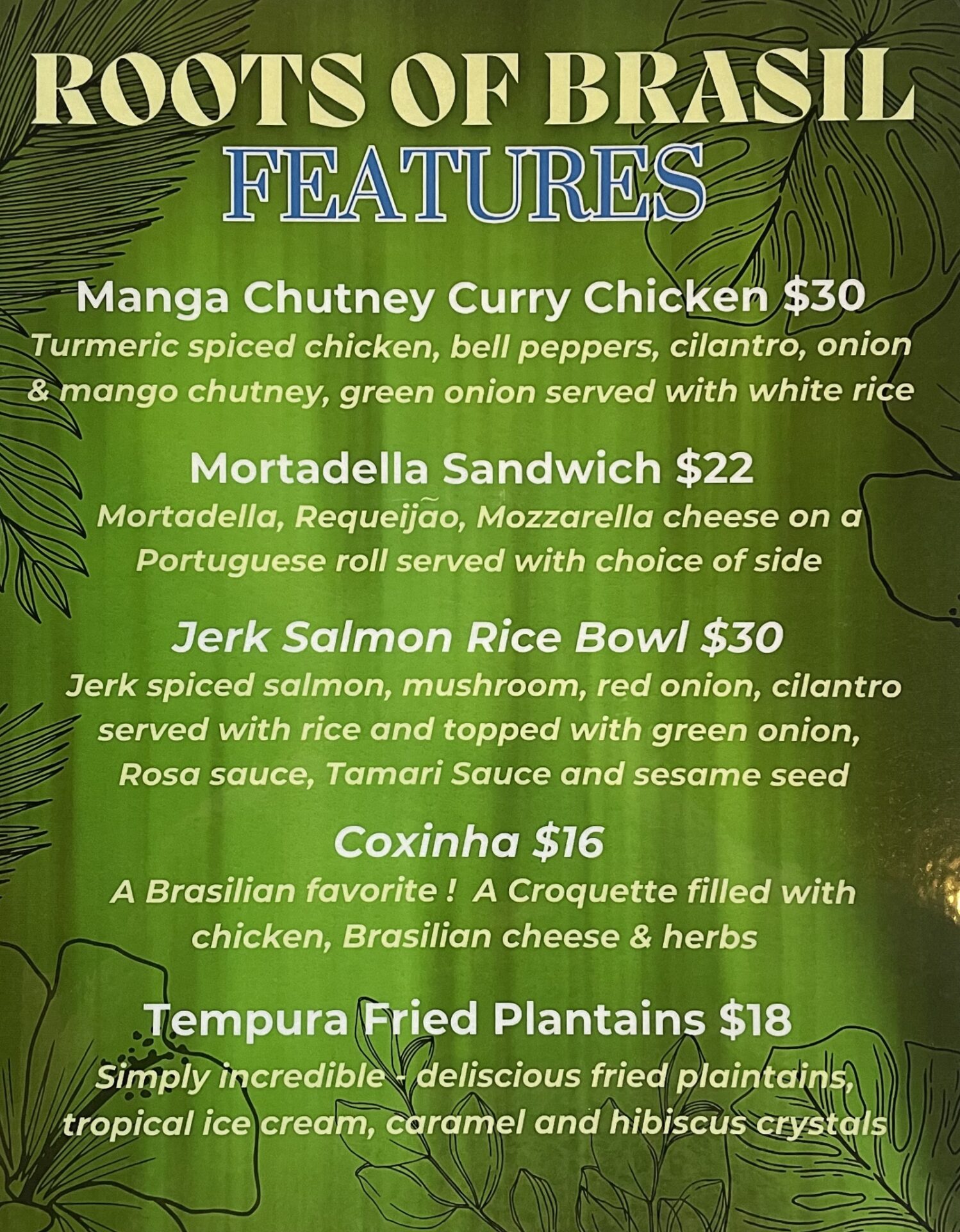 The Brazilian restaurant Roots of Brasil has several featured dishes that will be available all winter, including tempura fried plantains with ice cream for desert.