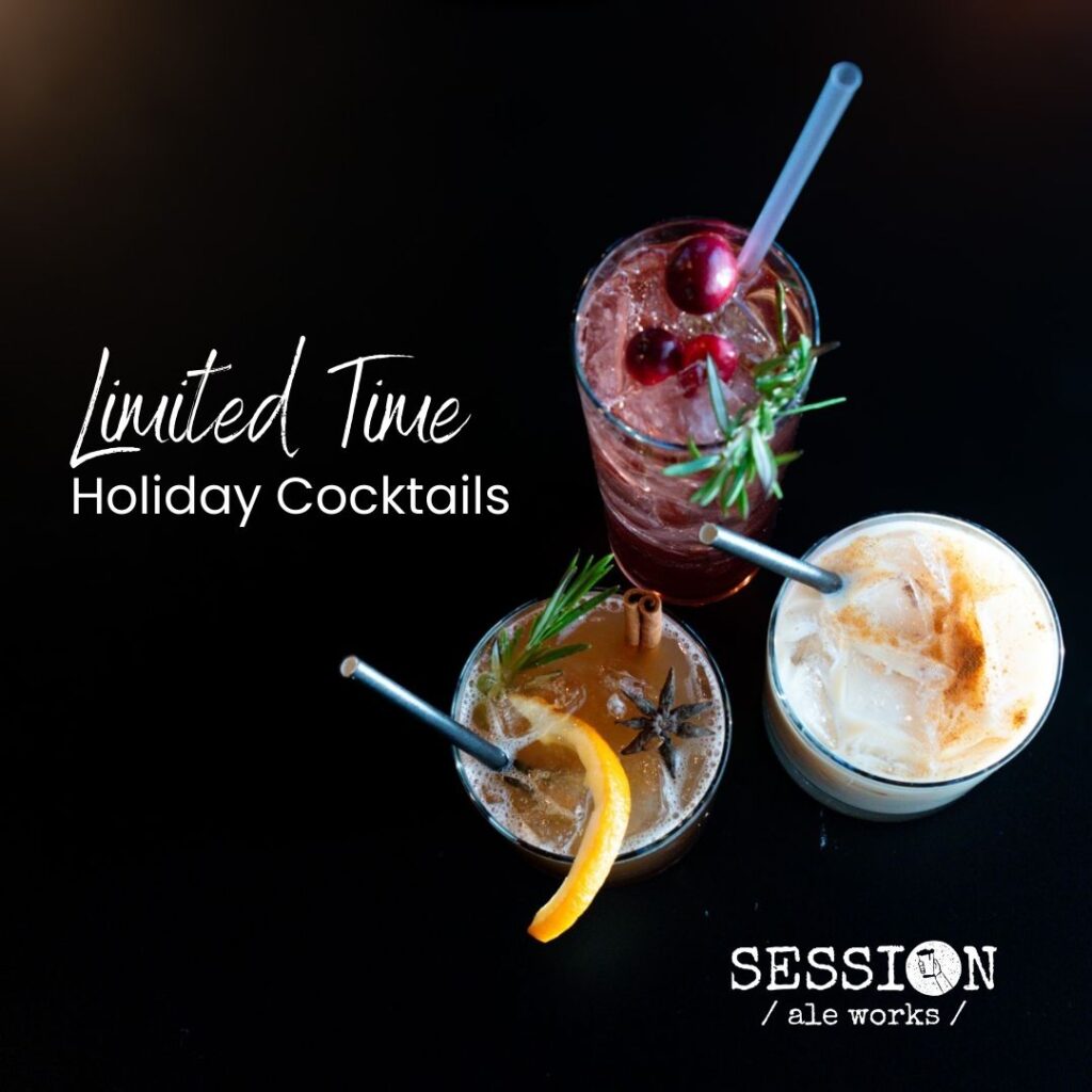 Session Ale Works has released its holiday cocktail menu: Nutty Irishman, The Grinch, The Blizzard, Apple Cinnamon Old-Fashioned, Holiday Negroni and Cranberry Kringle. An ideal time to try them might be during happy hour, which has new specials. From 3 to 6 p.m. Tuesday through Friday, get 2-for-1 cocktails, domestic bottles and domestic taps and 20 percent off appetizers.
