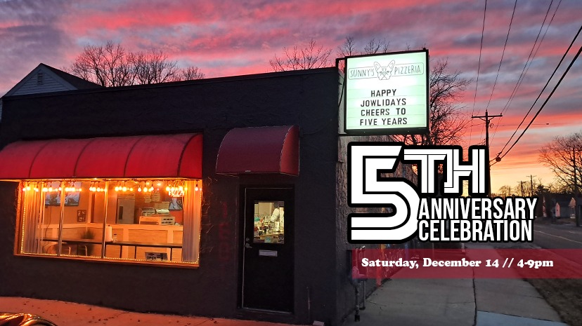 Sunny’s Pizzeria is celebrating its fifth anniversary with specials and a bingo party. From 4 to 9 p.m. Saturday, get $5 off a pizza, $5 pints of tap beer and a BOGO beer deal and 20 percent off all merchandise. Bingo will start at 7 p.m., so come early if you want one of the 35 seats in the restaurant.