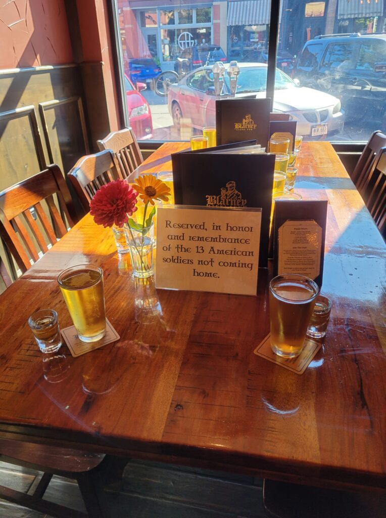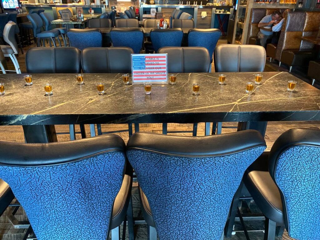 Several Sioux Falls area bars and restaurants displayed 13 beers or drinks on a reserved table to honor the service members killed in a suicide bombing in Kabul, Afghanistan. Here are a few photos of the tributes.