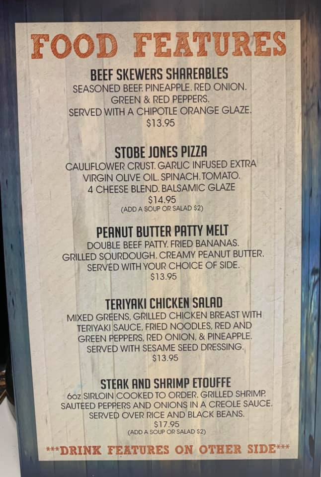Monthly specials for food and drink are back this month at Tinner’s Public House. For sharables, there are beef skewers with pineapple, red onion and green and red peppers, served with a chipotle orange glaze. The Stobe Jones pizza is back, along with a peanut butter patty melt, teriyaki chicken salad, and steak and shrimp etouffee.