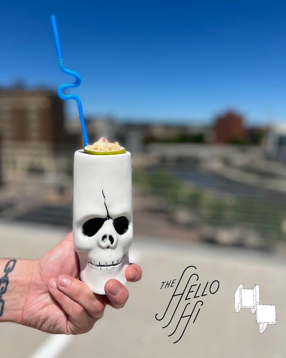 The Hello Hi is partnering with Headlights Theater to promote this Friday’s season premiere with a new cocktail called “Headlights.” It features Laird’s apple brandy, Rittenhouse rye, Velvet Falernum, Suze, which is a French brand of bitters, banana, acid and fire. We’re not kidding.