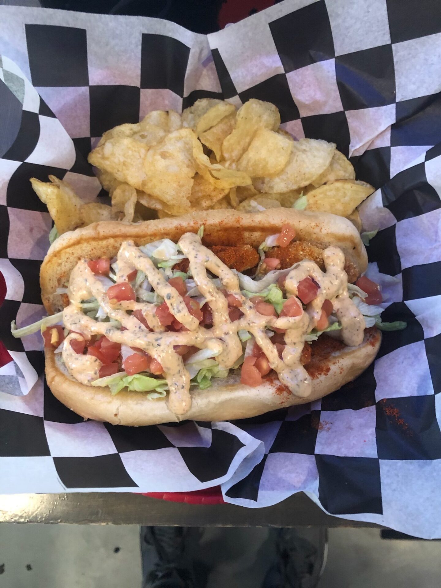 Spicy taco burger: Mexican spiced burger patty, spicy mini tacos, manchego & cheddar cheeses, ancho lime mayo, lettuce, Pico de Gallo, avocadoes, crispy tostada, brioche bun, topped with more spicy mini tacos. Served with tortilla chips and white queso.