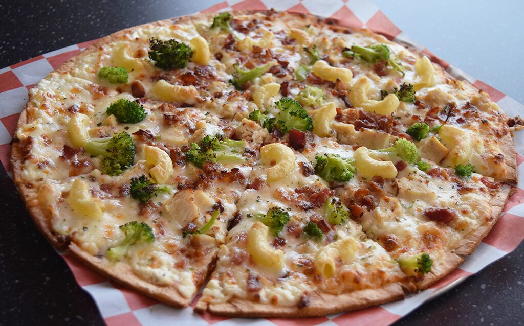 New seasonal pizzas have arrived at Sunny’s Pizzeria. The Drop Dead Fred – remember the 1991 film with Phoebe Cates and Rik Mayall? – has alfredo sauce, garlic, mozzarella, macaroni, chicken, bacon and broccoli. Pickle Me Timbers goes this route: ranch, mozzarella, bacon, pickles, banana peppers, green peppers, tomatoes, bread crumbs and basil pesto drizzle. And the BLT OMG is, obviously, a nod to the sandwich.