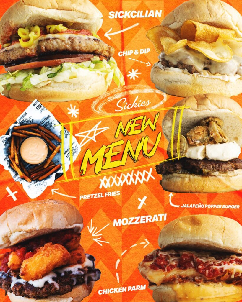 The popular Sickcilian sandwich is back on the menu at Sickies Garage, general manager Brian Prososki said. “It used to be a favorite of a lot of people,” he said of the sausage patty topped with marinara, pepperoni, ham, provolone, pepperoncini, lettuce and mayo. Other new additions to the menu include the Mozzerati burger topped with fried cheese curds, mozzarella and marinara; jalapeno popper burger served with a raspberry dipping sauce; chicken parm sandwich, crispy chicken ranch sandwich, and beer-battered fish sandwich; The dessert menu is completely new, Prososki said, with ultimate chocolate cake, key lime margarita cheesecake, Oreo cheesecake and carrot cake.