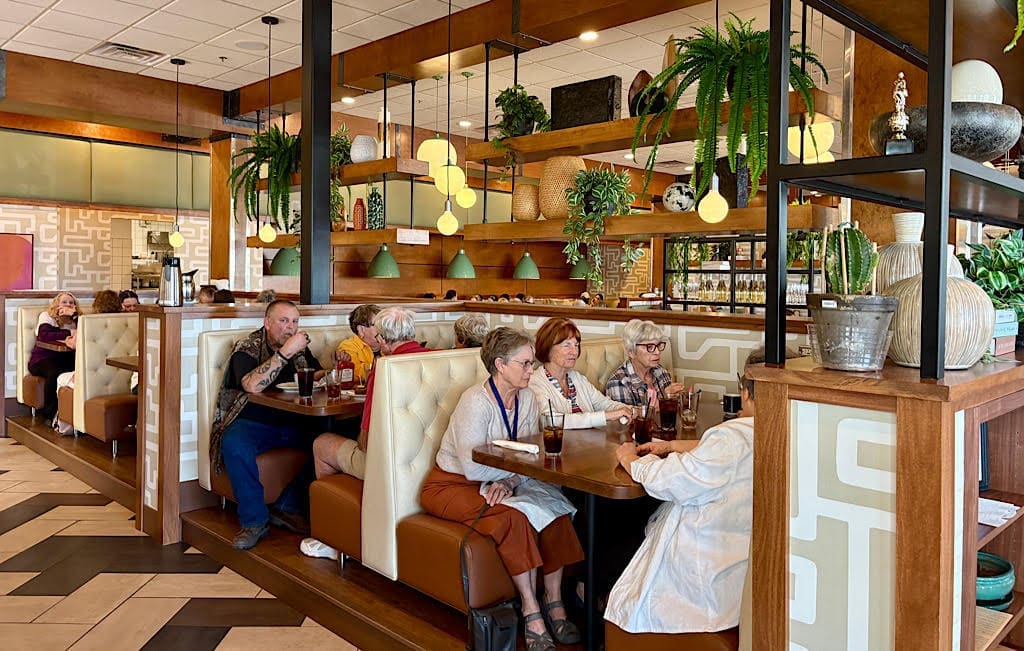 All Day Cafe has a new look with different booths and other seating, a room divider for the bar area, expanded seating for waiting, a new server station, added greenery and other new decor.
