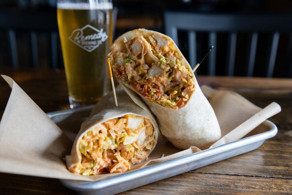 Remedy Brewing Co. has introduced four items to its menu: Patio Pork Sandwich, Chopped Beef, Buffalo Chicken Caesar Wrap and Bahn Mi Flatbread.