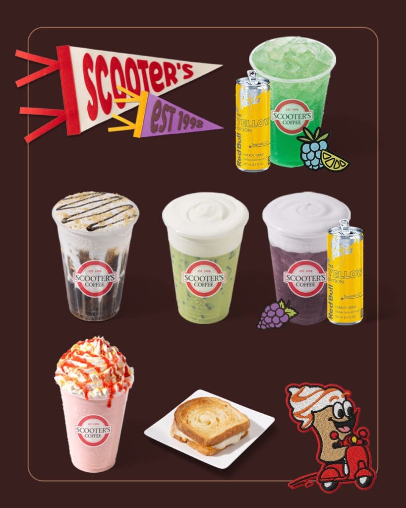 Scooter’s Coffee has introduced its summer drink lineup: Strawberry Shortcake Shake, Caramel Cookie Shake, Sticky Monkey Shake, Grape Rush Red Bull Infusion, Banana Cream Matcha, S’mores Latte and S’mores Creme Cold Brew. Customers also will find new Red Bull Infusion flavors and the Triple Cheese Croissantie.