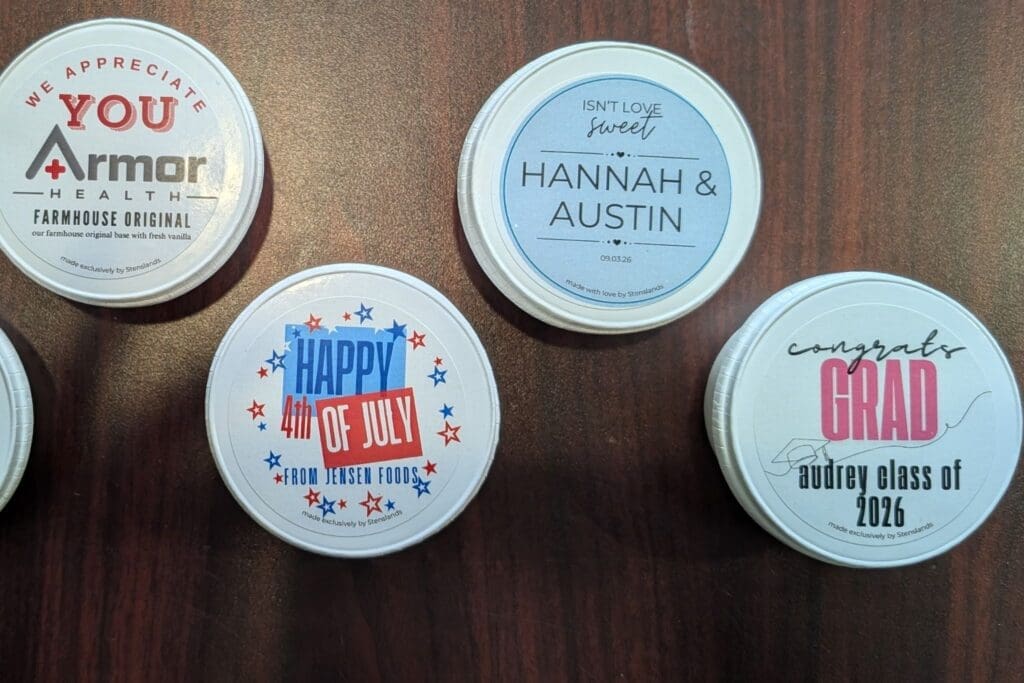 Stensland Family Farms now offers custom labels for its single-serve ice cream cups that can be personalized for celebrations like graduations and weddings or corporate events. Customers also can add a freezer box or ice cream cart to keep the treats frozen.
