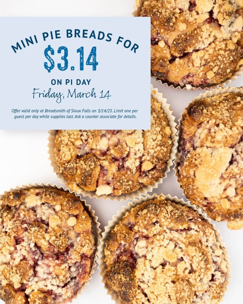 On Friday, Breadsmith is selling mini pie breads for $3.14, with a limit of one per customer.