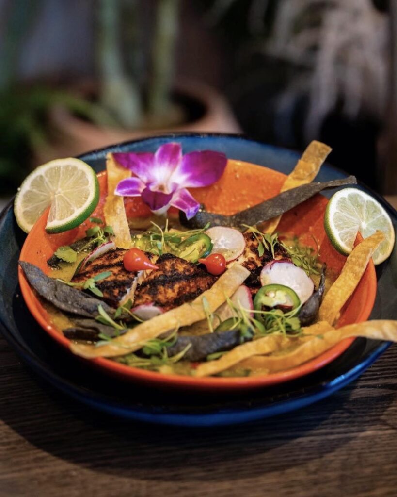 - Dahlia Kitchen + Bar is serving pozole every day. It features grilled chile-rubbed mahi mahi with hominy, verde fish consomme, radish, jalapeno, cilantro and tortilla strips.