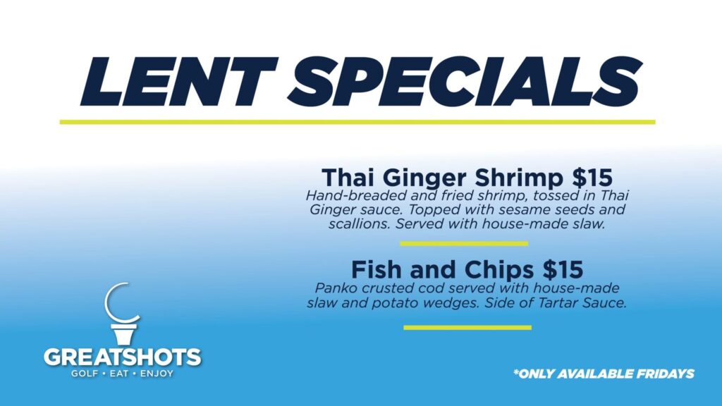 - Great Shots has new specials on Fridays: Thai Ginger Shrimp and Fish & Chips. The restaurant notes that customers can substitute salmon or shrimp into many of its regular menu items.